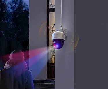 Cámara de Seguridad Exterior Inteligente con Luz de Patrulla, Sirena y Vigilancia Continua 24/7.