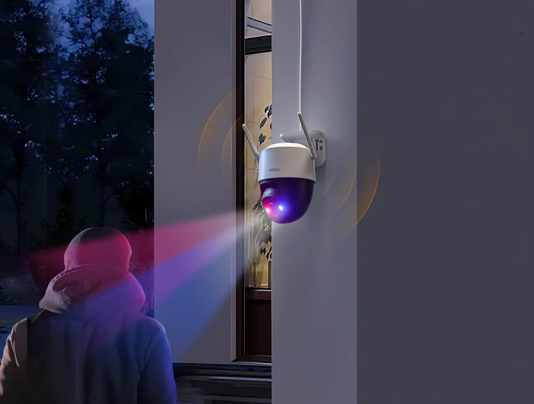 La IMOU 5MP, es una cámara IP de seguridad exterior con resolución Full HD y visión a color nocturna. Ofrece vigilancia completa 24/7, con rotación PTZ, conectividad WiFi y audio bidireccional para comunicación en tiempo real. Incorpora funciones de disuasión activa (luces y alarma sonora).